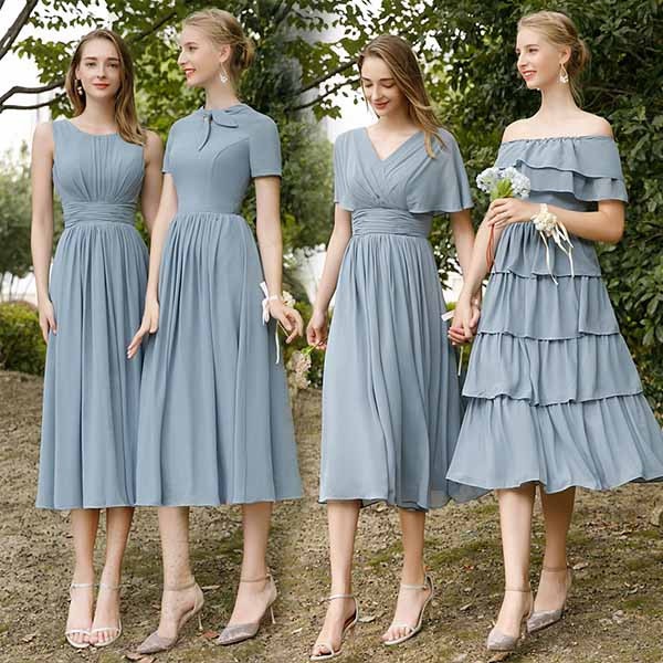 半額品 ブライズメイド ドレス ミディアムドレス ミモレ丈 パーティードレス ブルー ファスナー 演奏会用ドレス 袖あり 大きいサイズ ワンピース 定価から30 オフ Farmerscentre Com Ng